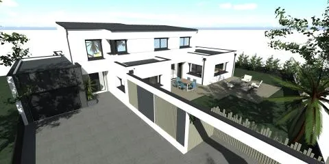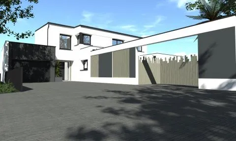 Sur une parcelle de terrain de plus de 730 m², nos clients ont souhaité faire construire une grande maison de 180 m², sur un étage. Cette future réalisation toiture monopente zinc et excroissante toit plat bénéficie d'un garage, également en bardage zinc. Particulièrement lumineuse grâce à la présence de nombreuses fenêtres et baies vitrées, cette maison contemporaine possèdera également deux terrasses extérieures, au Nord-Ouest et l'autre orientée Sud-Ouest.