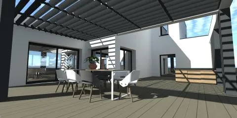 À l'extérieur de la maison, se trouve un brise vue bois pour préserver l'intimité des futurs propriétaires.