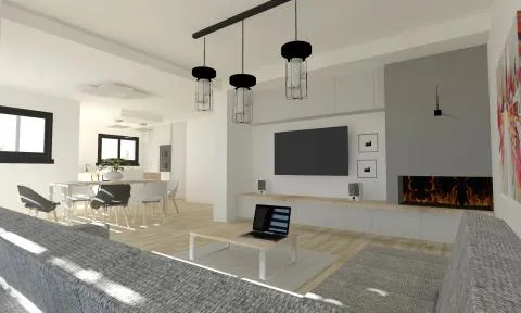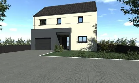 Cette future maison de 130 m² possèdera une toiture en ardoises naturelles avec extension toit plat, ainsi qu'un parement pierre à l'entrée de l'habitation. La réalisation sera composée au rez-de-chaussée d'un salon séjour avec cuisine ouverte et îlot central, exposés Sud. Le salon bénéficiera d'une hauteur de 2m70 pour apporter davantage de volume dans la pièce.