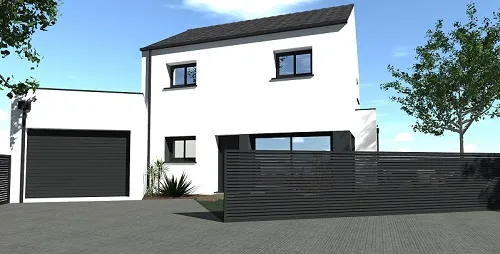 Cette future maison de 110 m² avec une toiture ardoises et extension toit plat sera construite sur un étage.
