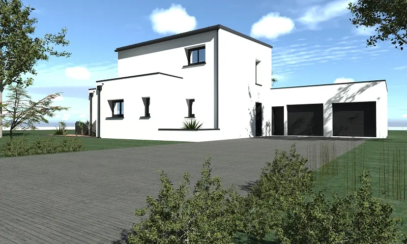 Cette future réalisation prendra ses quartiers dans la commune de Bréal-sous-Montfort, pas loin de Rennes. Avec une toiture principale en zinc monopente, elle possède au rez-de-chaussée, une excroissance à toit plat. Sa surface habitable de plus de 120 m² en fait une maison contemporaine bénéficiant de grands volumes. Composée de deux garages, elle abrite également une terrasse extérieure pour profiter pleinement de l'extérieur et des beaux jours. Cerise sur le gâteau, ils ont également opté pour une piscine sur leur terrain !